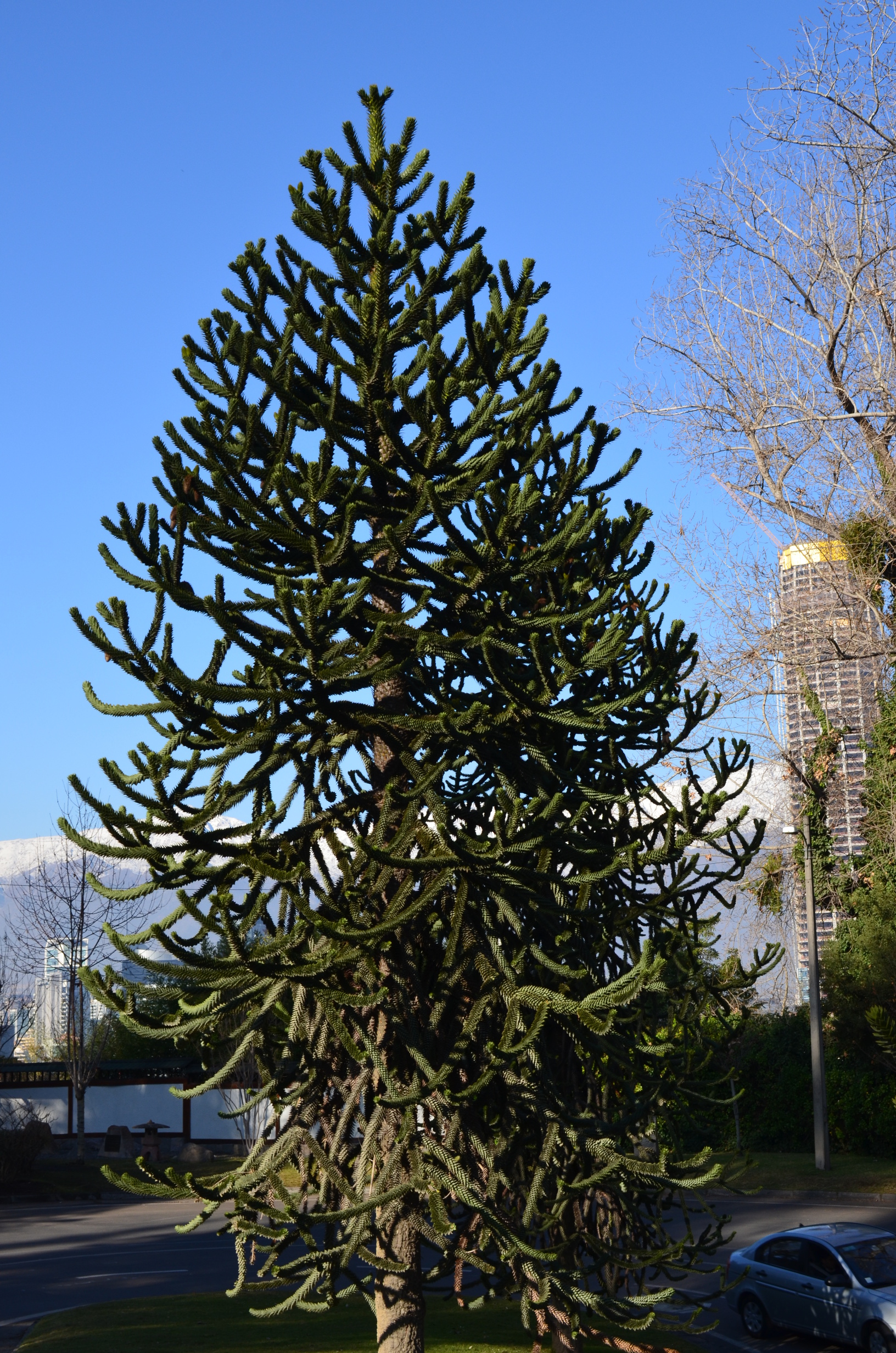 The Monkey Puzzle tree is native to Chile. They are mostly found in southern Chile but a few have been planted in Santiago.