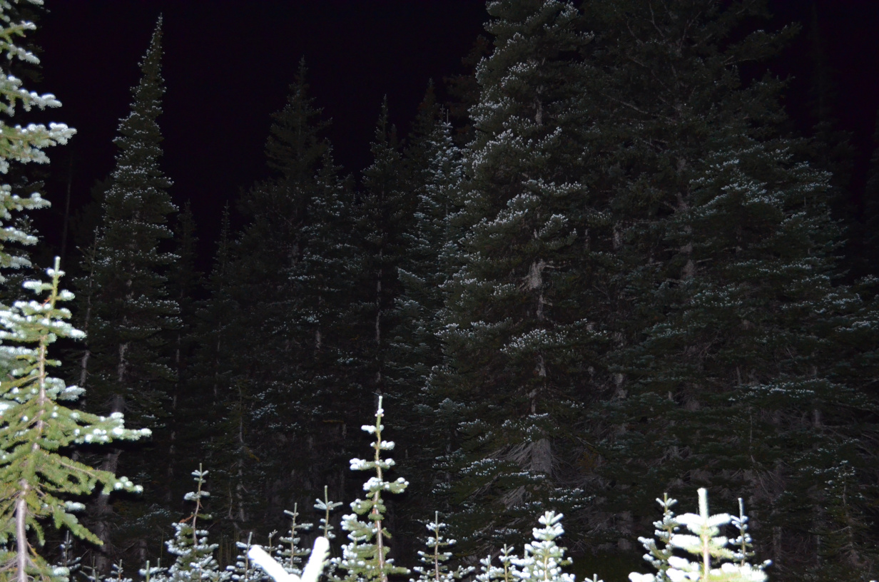 I found that the new growth on the trees reflected the camera flash far more than the rest of the tree. It created a unique effect.