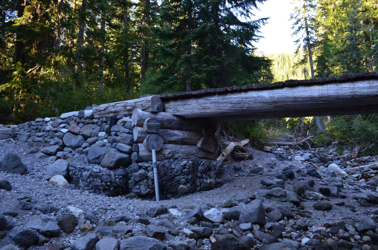 The last day was just hiking down Paradise River to Longmire. A good part of the trail followed an old wooden pipe held together with steal bands. Presumably it used to supply water to the Longmire area.