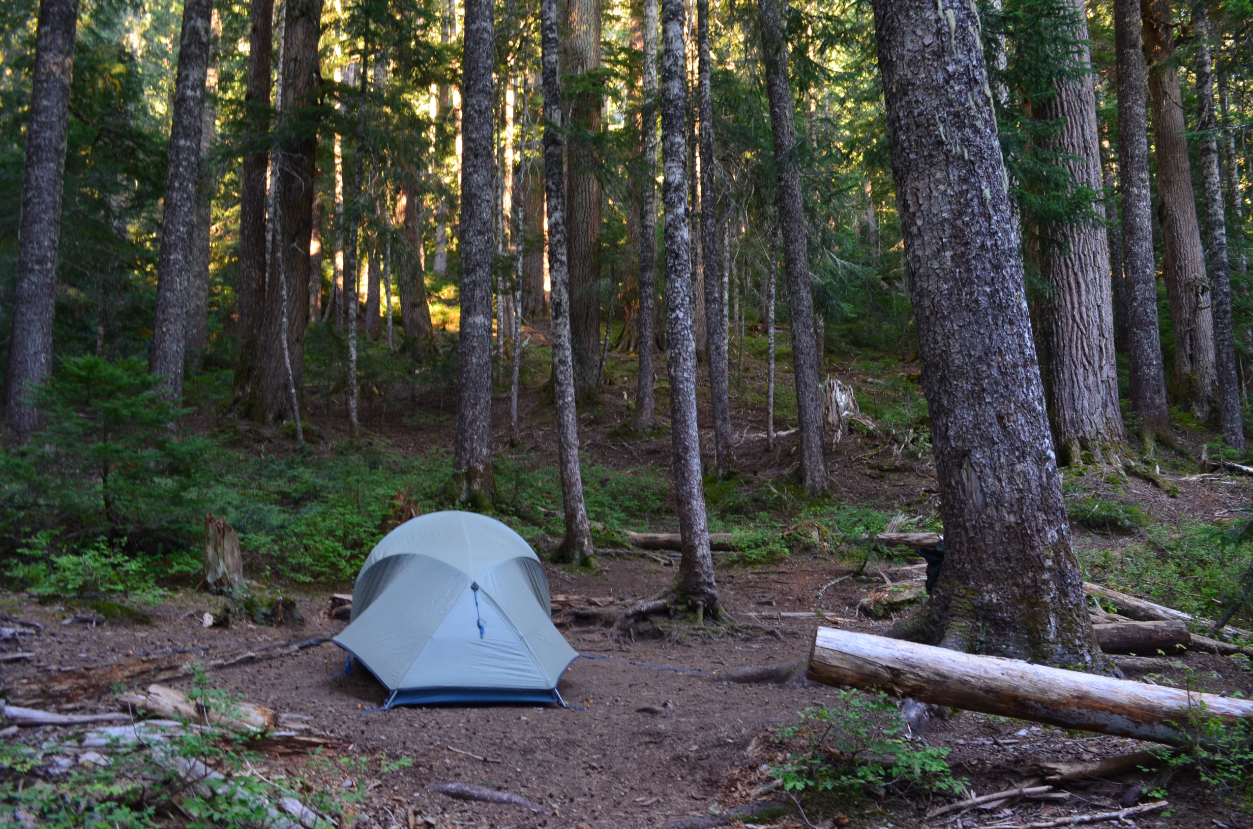 Genevieve and I found a great spot to car camp at Johnson Creek. We spent the weekend there and enjoyed a short hike part way up Angry Mountain Trail.