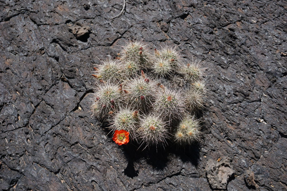 The hike out across the old lava flow is difficult. If the giant cracks don't get you the cacti & yucca will.