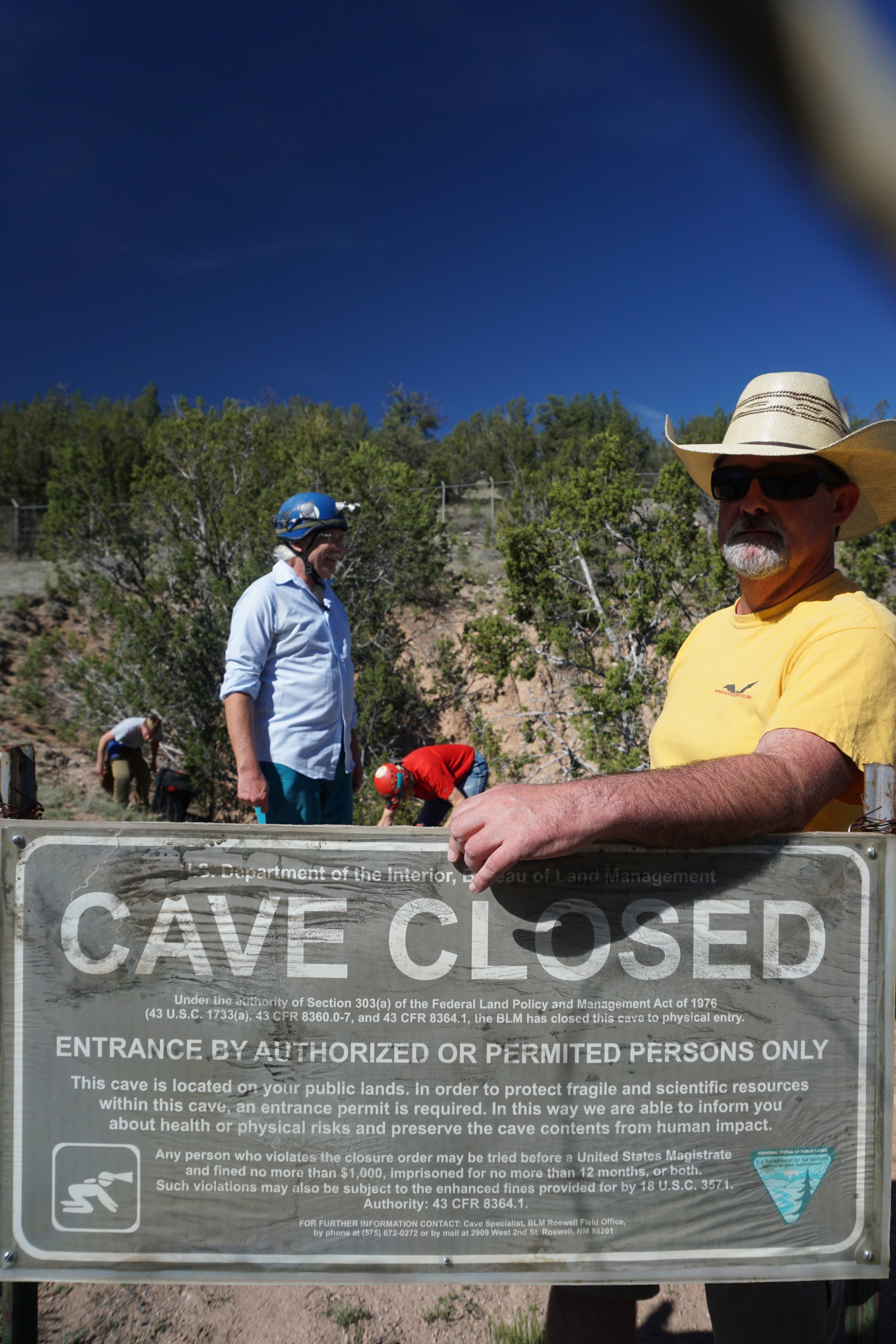 The cave was recently closed to all public entry due to WNS concerns. Now access to the cave is only by special permit for approved purposes such as research, exploration, and restoration. this put an end to beginners trips in the cave. Shown here, Knutt Peterson, BLM Cave Specialist, is monitoring while a survey party prepares for a trip to improve the survey of Hell Hole.