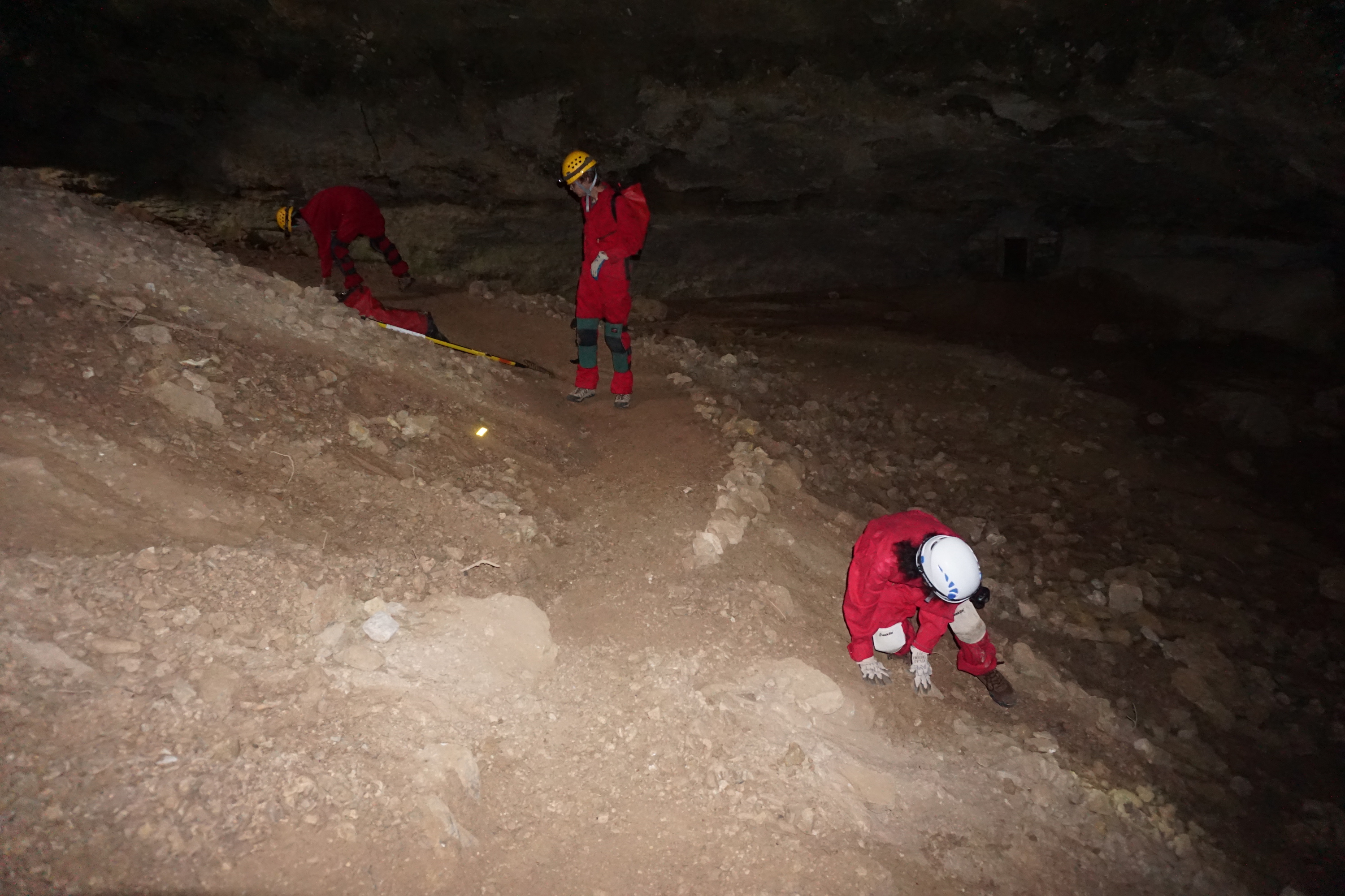 This trip was one of the currently rare non-beginners trips. While Fort Stanton Cave used to be open to the general public, it is now closed and difficult to access. Permits are restricted to approved exploration and conservation related proposals. While beginners are encouraged to participate in such work, trip leaders also must insure that proper WNS decontamination procedures are followed and that the sensitive areas in the cave protected. To insure that the stringent requirements are met it is necessary to insure that all cavers take the requirements seriously and are experienced with the WNS procedures. So, sadly, Fort Stanton Cave can no longer be used as a beginners cave; new cavers are now introduced to caving in less sensitive caves. Once they have demonstrated competence in the basics they can then enter more sensitive caves. This trip the NMT Caving Club was helping the BLM with trail improvements, both repairing erosion at the entry sink and installing reflectors along the trail inside the cave.