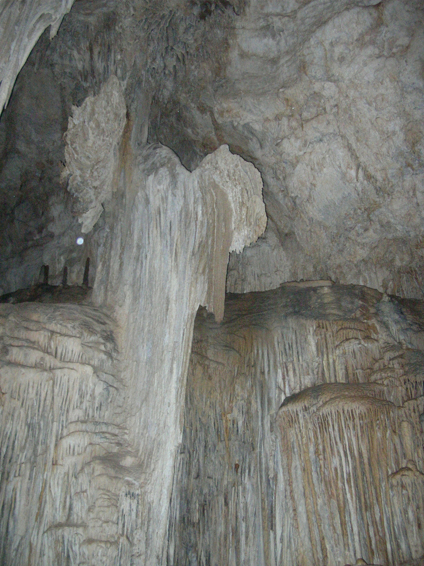 This formation stood out as being pristine despite the surrounding mod. Remember, stalactites stick tight to the ceiling and stalagmites might have stuck tight but they didn't, and stalactites that don't stick tight fall on your head.